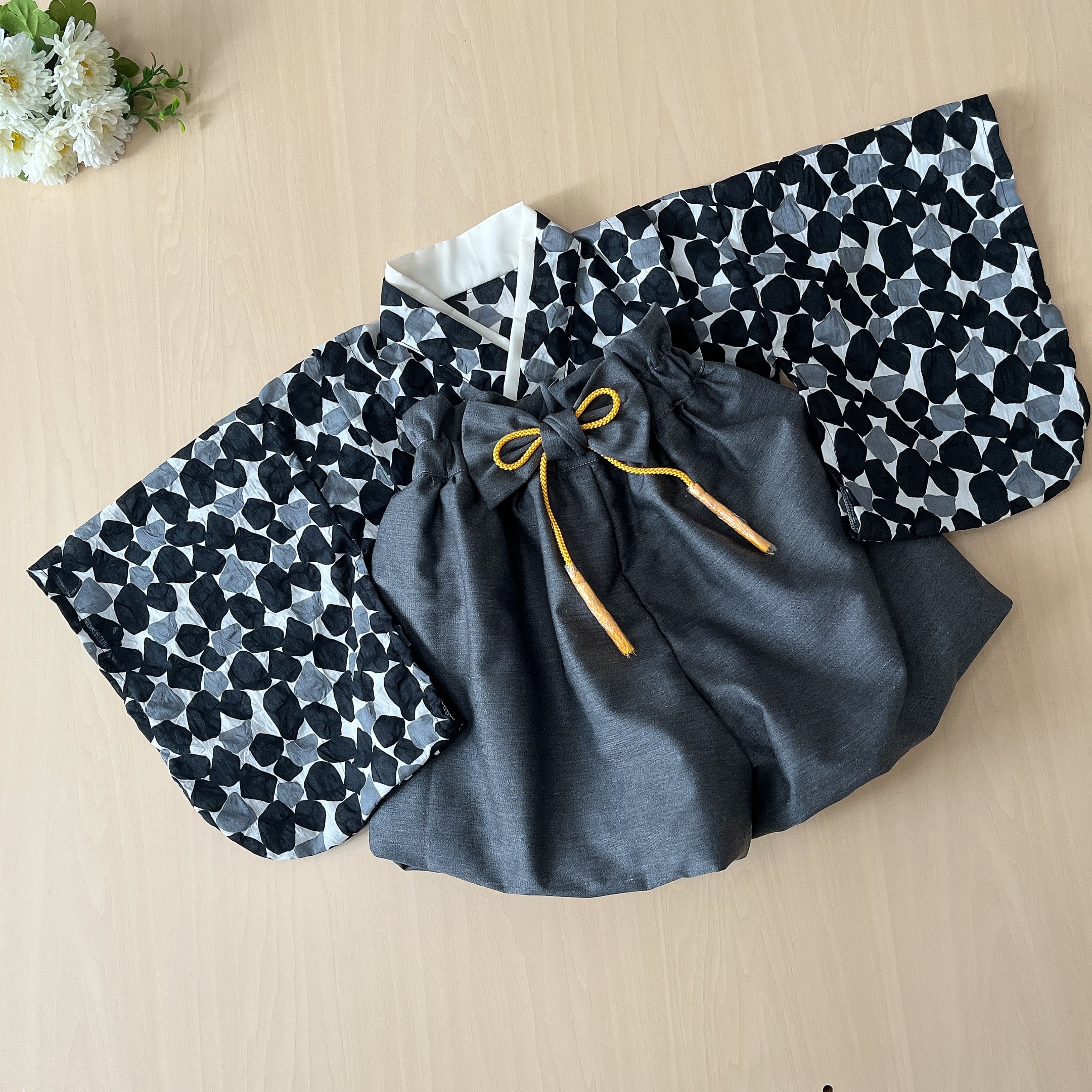 送料無料【60-70】ベビー袴 モダンモノトーン✖︎鉛色の袴