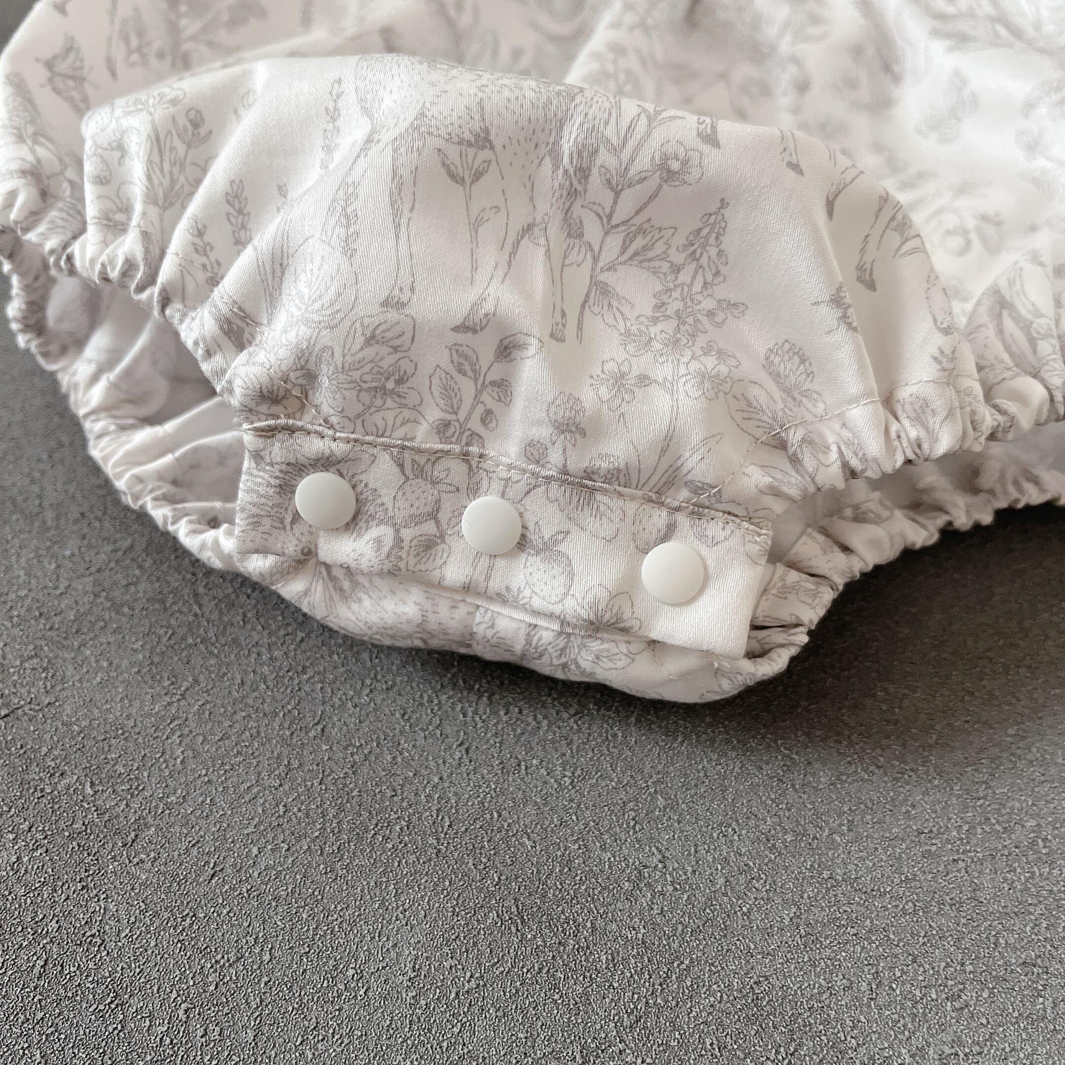 さらに、おむつ替えも楽々できるように股部分にもスナップを施しました
