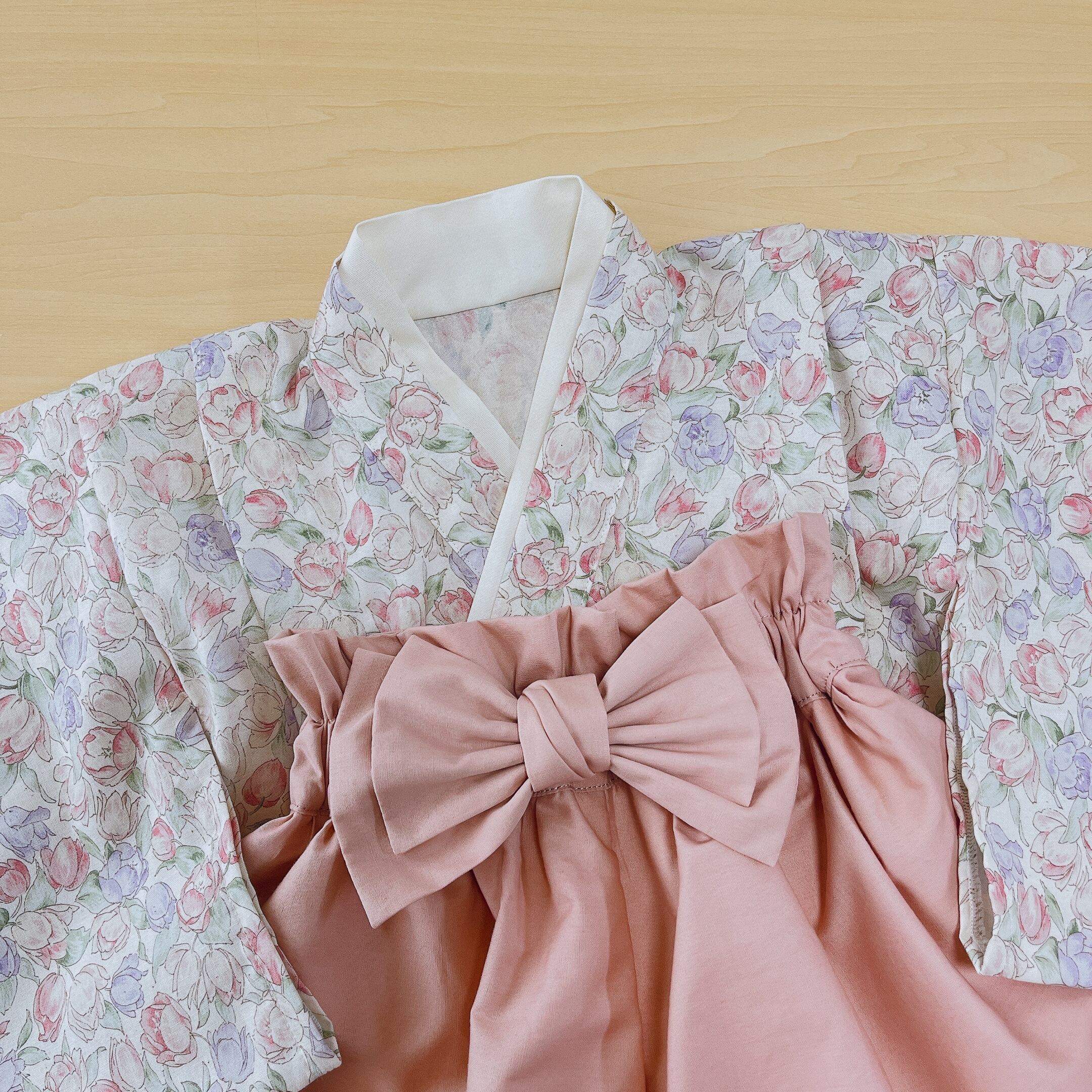 【80】ベビー袴 チューリップ✖︎くすみピンクの袴